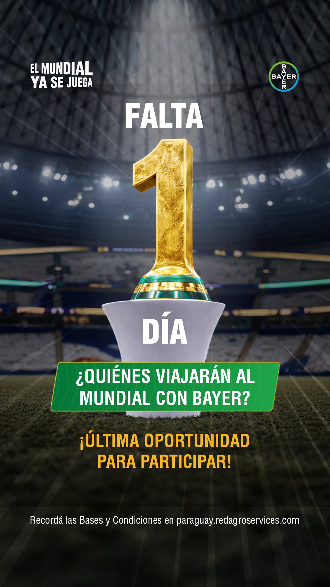 Participan de la promoción las facturas emitidas y/o CUC desde el 15 de febrero hasta el viernes 17 de abril de 2026. El sorteo se realizará el martes 21 de abril de 2026 a las 12:00hs vía online por nuestro canal de Instagram: Agrobayer_PY.